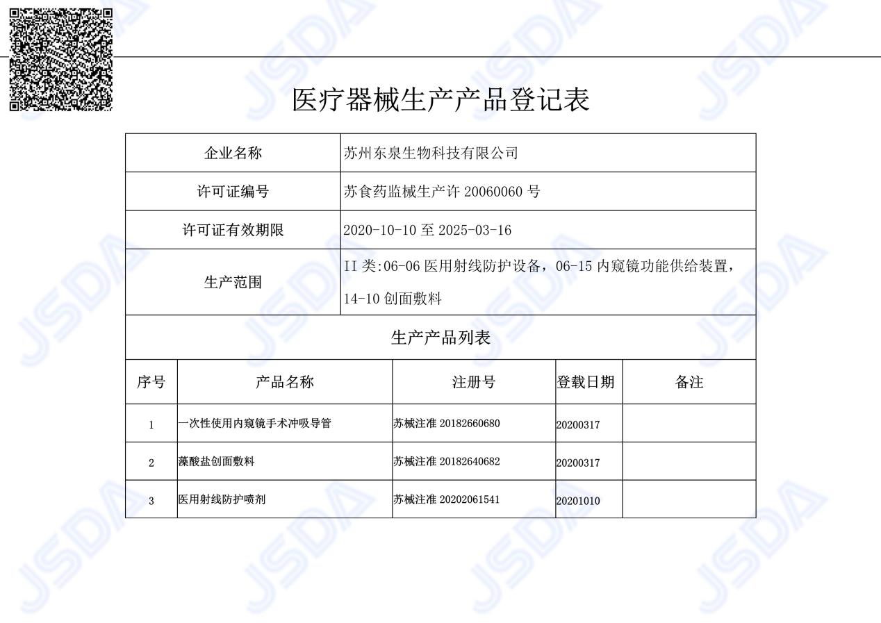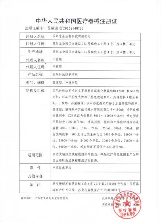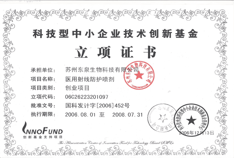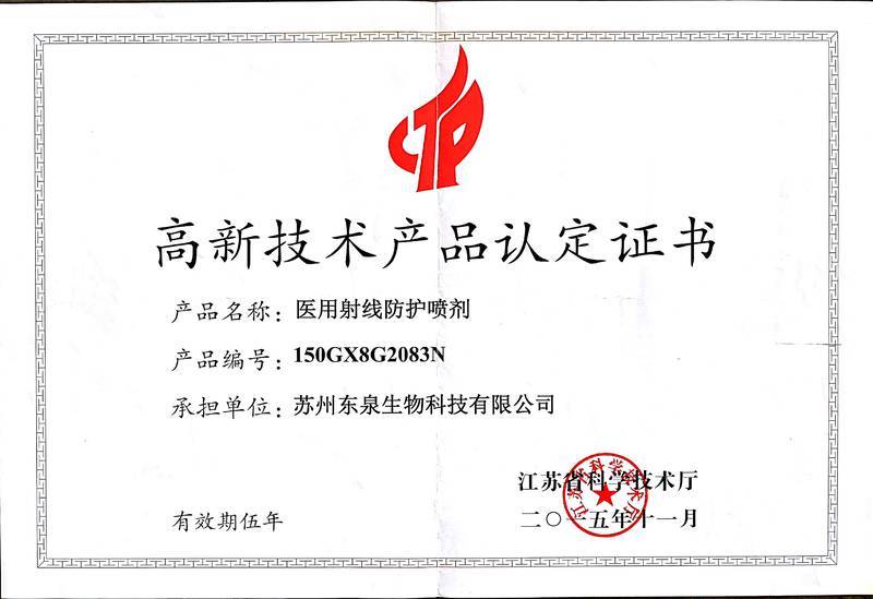 蘇州東泉生物科技有限公司創(chuàng)建于2006年,現(xiàn)位于蘇州工業(yè)園區(qū),是專(zhuān)業(yè)從事醫(yī)療器械產(chǎn)品研發(fā)、生產(chǎn)、銷(xiāo)售的高新技術(shù)企業(yè),也是國(guó)內(nèi)較早開(kāi)展自由基清除劑超氧化物歧化酶(SOD)的生物效應(yīng)研究,并對(duì)超氧化物歧化酶進(jìn)行了純化研究的企業(yè)。企業(yè)研發(fā)生產(chǎn)的高新技術(shù)產(chǎn)品 《醫(yī)用射線防護(hù)噴劑》,獲國(guó)家發(fā)明專(zhuān)利。