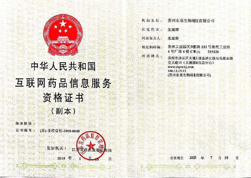 互聯(lián)網(wǎng)藥品信息服務(wù)證書(shū)副本