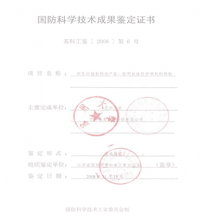 2. 經(jīng)江蘇省國(guó)防科學(xué)技術(shù)工業(yè)辦公室鑒定:該項(xiàng)目具有創(chuàng)新性,處于國(guó)內(nèi)領(lǐng)先水平。獲得《國(guó)防科學(xué)技術(shù)成果鑒定證書(shū)》