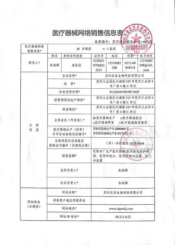 醫(yī)療器械網(wǎng)絡(luò)銷(xiāo)售信息表正面
