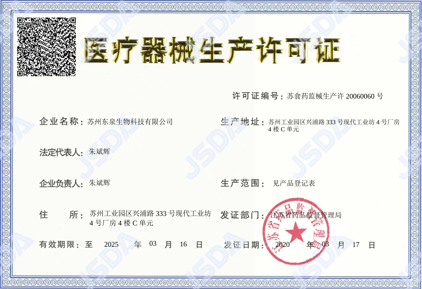生產(chǎn)地址:蘇州工業(yè)園區(qū)興浦路333號現(xiàn)代工業(yè)坊4號廠房4樓c單元